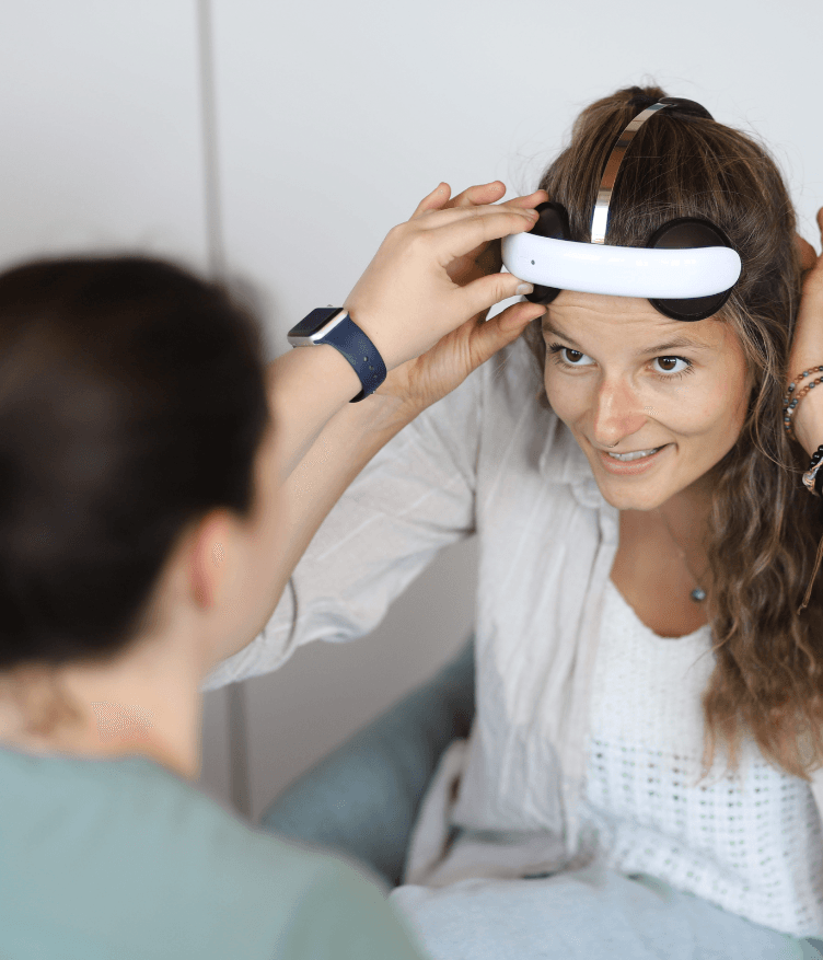 Patient:innen nutzen das Flow tDCS-Headset zusammen mit der App, um ihre Behandlung bequem von zu Hause aus zu steuern. Fachkräfte erhalten über eine digitale Plattform Einblick in Therapietreue und Behandlungsergebnisse in Echtzeit. Dies unterstützt fundierte, datenbasierte Entscheidungen in der Patientenbetreuung.